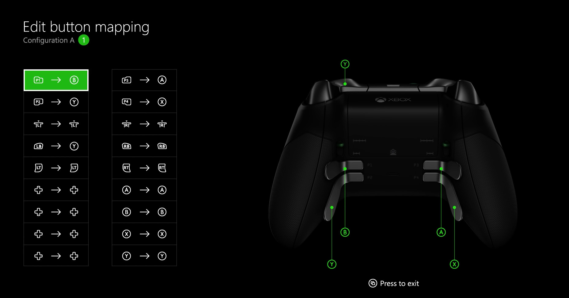 The design of controller is unique and can be confusing to those who are unfamiliar with existing assistive controls and the powers of controller remapping. When compared to the standard Xbox One controller, only a handful of features are recognizable: the d-pad, menu button, view button, and home button. Everything else, however, is foreign: two large circular buttons, the USB ports on the left and right side, and the nineteen 3.5mm jacks on the back side. The two circular buttons are simply built-in adaptive switches that can be pressed with multiple fingers, the palm of the hand, an elbow, or even a chin. The USB ports allow for HID controllers to be attached, such as analog sticks. Finally, the 3.5mm jacks allow for up to nineteen third-party adaptive switches to be connected. Each input device is customizable through the Xbox Accessories app and players can design an entire control scheme that works best for them. They are also able to create different controller profiles for different games, or even multiple profiles for the same game.